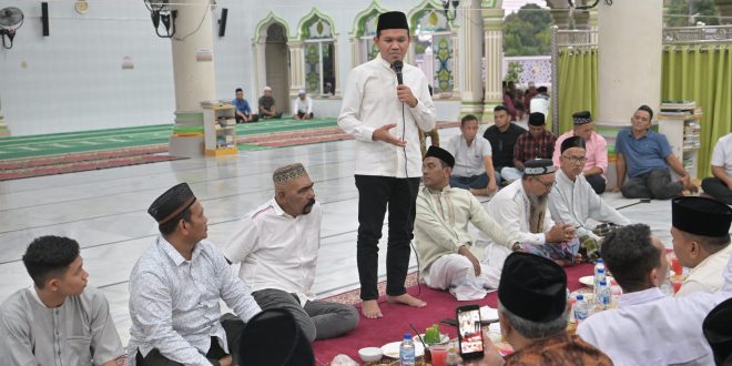 AKSARA MEDIA ACEH I Pidie – Wakil Gubernur Aceh Fadhlullah berbuka puasa bersama ratusan masyarakat di Gampong Teupin Raya, Kabupaten Pidie, Jumat (13/3/2026). Kegiatan yang berlangsung di Masjid Darussaadah itu turut dihadiri sejumlah anggota DPRA, tokoh Komite Peralihan Aceh (KPA), serta tokoh masyarakat setempat.