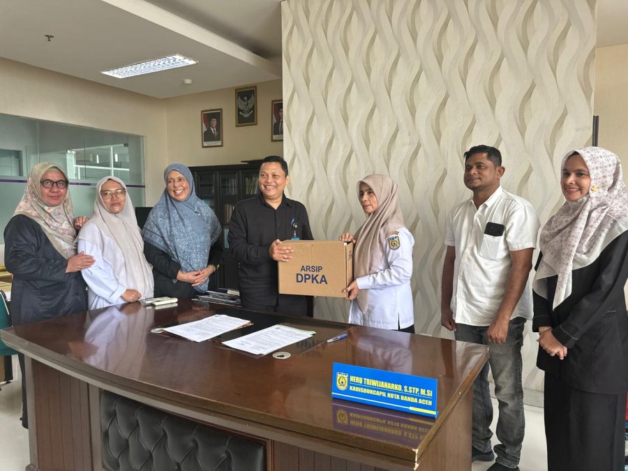 AKSARA MEDIA ACEH I Banda Aceh – Kepala Dinas Perpustakaan dan Kearsipan (Dispersip) Cut Azharida, SH menerima penyerahan arsip statis oleh Kepala Dinas Kependudukan dan Pencatatan Sipil (Disdukcapil) Heru Triwijanarko, S.STP, M.Si di ruang kepala Disdukcapil setempat, Rabu (8/4/2026).